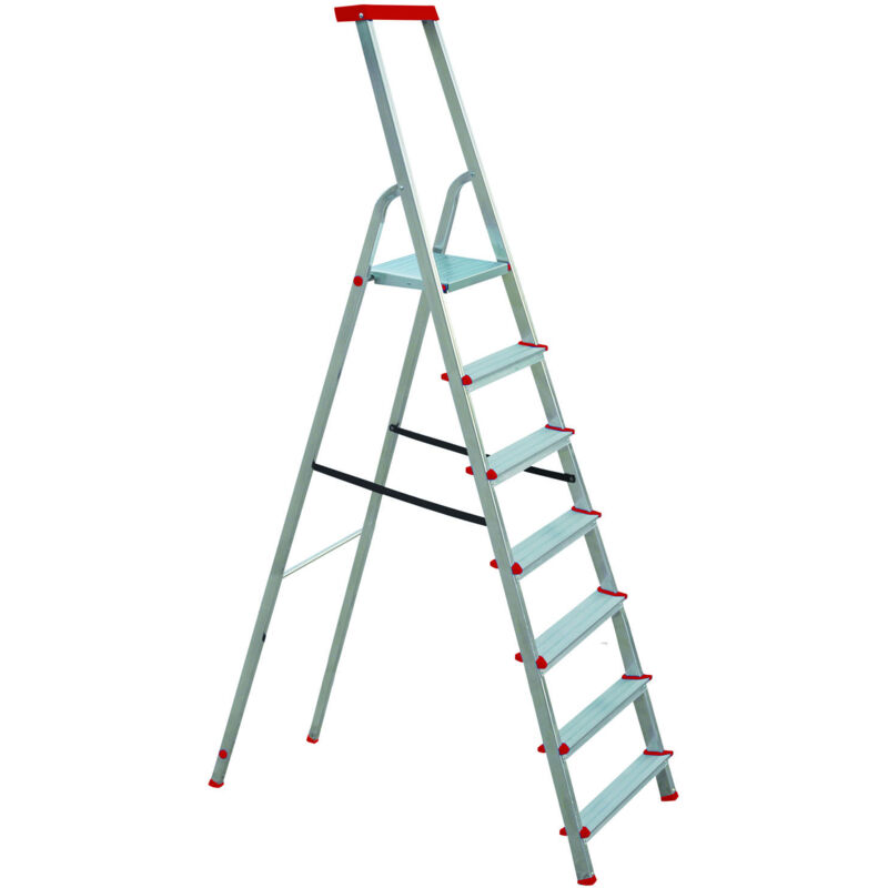 Caratteristiche: Interamente in alluminio Telaio in tubi quadri Spigolature guarnite in plastica Piano superiore con bloccaggio di sicurezza Gradini antiscivolo Cavetto di rinforzo (5-6-7-8 gradini) Vaschetta portaoggetti e gancio portasecchio rimovibile portata massima Kg. 150. Norme EN 131 Profili 3-4-5 gradini: Anteriore 40x20 mm. Posteriore 33x20 mm. Profili 6-7-8 gradini: Anteriore 50x20 mm Posteriore 33x20 mm. DISPONIBILI 3 Gradini - H. da terra 57 cm. 4 Gradini - H. da terra 79 cm. 5 Gradini - H da terra 100 cm. 6 Gradini - H. da terra 122 cm. 7 Gradini - H. da terra 143,5 cm. 8 Gradini - H. da terra 165,5 cm.
