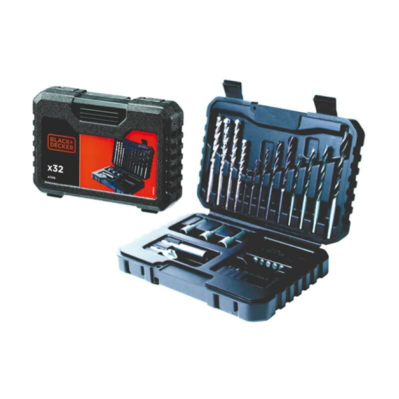 Set 32 pezzi: 14 inserti misti da 25 mm. - 3 bussole - 5 punte metallo - 4 punte legno - 4 punte muratura - adattatore magnetico - svasatore