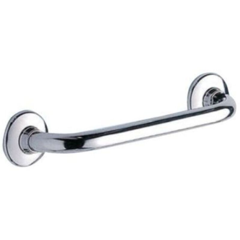 MANIGLIONE DI SICUREZZA MODELLO DIRITTO cm 45 cromoManiglione di sicurezza con fissaggio a muro realizzato in acetalico (materiale plastico ad altissima resistenza) studiato in collaborazione con il Politecnico di Milano per rispondere alle seguenti esigenze: 1) resistenza a carichi sul maniglione di almeno 150 kg, 2) perfetto isolamento elettrico per evitare la trasmissione di correnti vaganti.Vite di fissaggio in acciaio inox. (Ferramenta Beltrami)