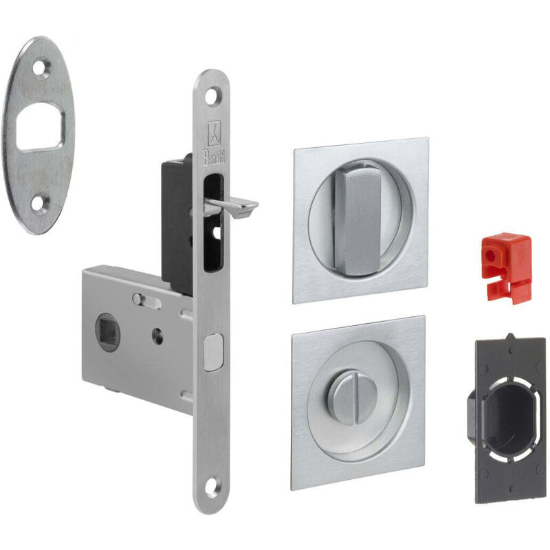 In acciaio. Per porte con spessore da 34 a 50mm. Non necessita di ditale di trascinamento. Composto da:- nicchia quadra ø 48mm con nottolino- nicchia quadra ø 48mm con vite di emergenza- serratura G500T entrata 50 mm, frontale 160x16.Finitura cromo satinato: 1,0: PZ