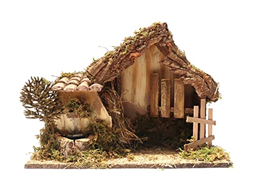 Ferrari & Arrighetti Capanna Vuota per Presepe, con Fontanella con Acqua Che Scorre e Alberello, Legno, Multicolore, Taglia Unica