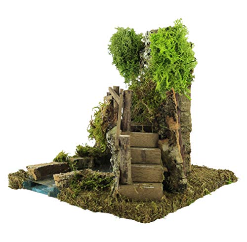 Ferrari & Arrighetti Laghetto nella Grotta con Ponte per Presepe, Inizio di Fiume Modulare, Sughero e Legno, Multicolore, 20 x 22 x 20 Cm