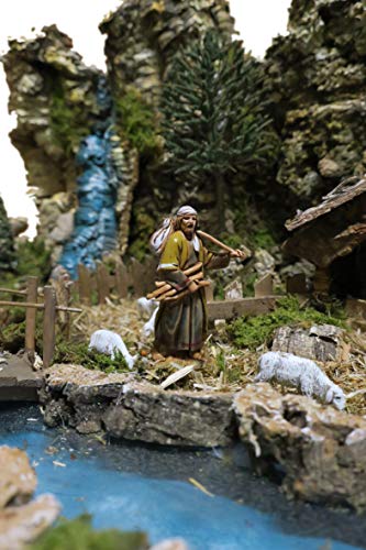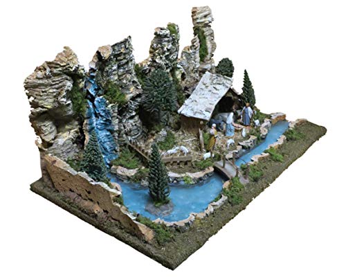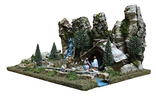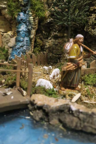 Ferrari & Arrighetti Paesaggio per Presepe con Fiume Illuminato e Statuine Natività 6,5 Cm, Legno/Resina, Multicolore, 36x56x25 Cm