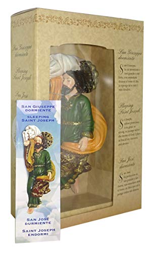 Ferrari & Arrighetti Statua di San Giuseppe dormiente da 20 cm in Confezione Regalo con segnalibro in IT/EN/ES