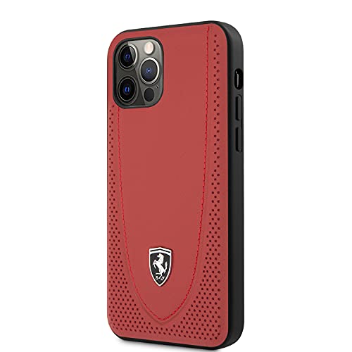 Ferrari - Custodia in pelle con logo argentato compatibile con iPhone 12/12 Pro (6.1)