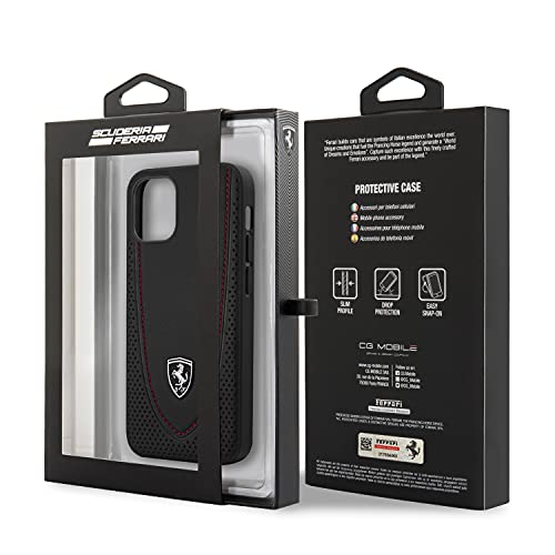 Ferrari - Custodia in pelle nera con logo argentato per Apple iPhone 12 Mini (5.4)