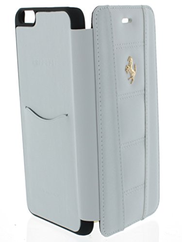 Ferrari FERR0024 - Custodia a Libro in Pelle Sintetica per iPhone 6 Plus, Colore: Bianco