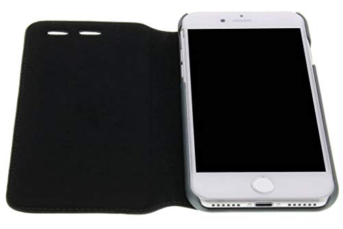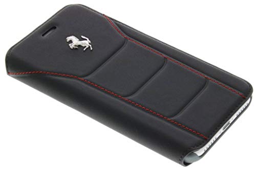 Ferrari FESEFLBKP7BKR - Custodia a libro per Apple iPhone 7, in vera pelle, con cuciture rosse, nero/argento