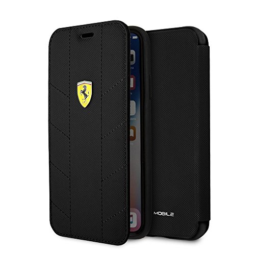 Ferrari Tyres Daphne Custodia Apple iPhone X/XS Custodia Portafoglio Vera Pelle Cover di Sostegno - Nero