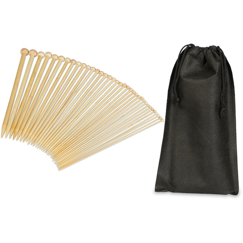 Sia che tu sia un principiante o esperto, questo set di aghi da maglia arricchirà i tuoi accessori per il lavoro a maglia. Con 2 aghi di 18 diverse misure ciascuno, avrai sempre a portata di mano il set di aghi giusto e potrai creare una varietà di progetti a maglia, come cappelli o calzini. Grazie al bambù naturale, i ferri da maglia sono comodi da impugnare. Inoltre, la superficie antiscivolo dei ferri da maglia in bambù impedisce ai punti di scivolare. Set da 36 aghi da calza in dettaglio - 18 spessori: 2 mm, 2,25 mm, 2,5 mm, 2,75 mm, 3 mm, 3,25 mm, 3,5 mm, 3,75 mm, 4 mm, 4,5 mm, 5 mm, 5,5 mm, 6 mm, 6,5 mm, 7 mm, 8 mm, 9 mm, 10 mm - Lunghezza per ago: 25 cm ca. - Peso ciascun ferro: 20 g max. - Materiale: bambù - Colore: marrone naturale Kit per lavorare la maglia con segnapunti - 36 ferri da maglia in 18 misure diverse: dai più grandi fino ai più corti - Utilizzo confortevole grazie al bambù naturale - Per creare un'ampia gamma di progetti a maglia - cappelli, calze, maglioni