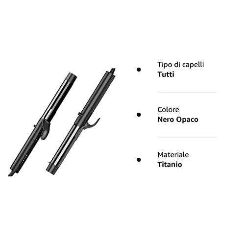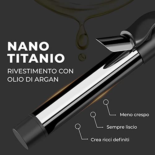 RISULTATI PROFESSIONALI CON IL TITANIO: La bacchetta dell'arricciacapelli è progettata con un rivestimento in nano-titanio di livello professionale, che consente di ottenere ricci definiti che durano fino a 48 ore. A differenza del tradizionale materiale ceramico, il rivestimento in titanio è più liscio e aiuta a ridurre la metà dell'effetto crespo causato dall'attrito.