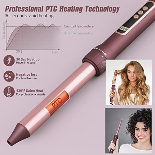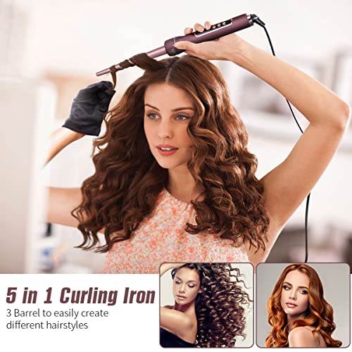 【Cambia Facilmente Più Acconciature】5 piastra arricciacapelli intercambiabili in ceramica, 22 mm 3 canne arricciacapelli professionale in grado di creare onde ordinate, 25 mm per capelli medi e ondulati, gli ferro capelli da 9 mm e 19 mm per i capelli ondulati piccoli. temperatura regolabile 180 °F ~ 450 °F, può soddisfare le diverse esigenze di diversi tipi di capelli