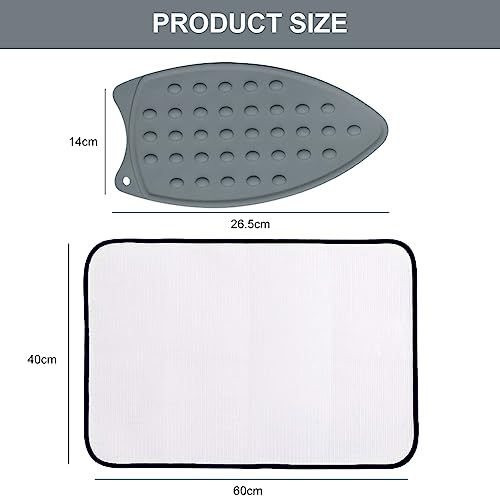 【La confezione include】: Riceverete 1 pezzo di tappetino in silicone grigio (14 x 26,5 cm) e 1 pezzo di tappetino da stiro di colore viola (40 x 60 cm).