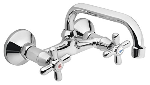 Rubinetto da muro nostalgia in ottone cromato, con erogatore dall'alto
