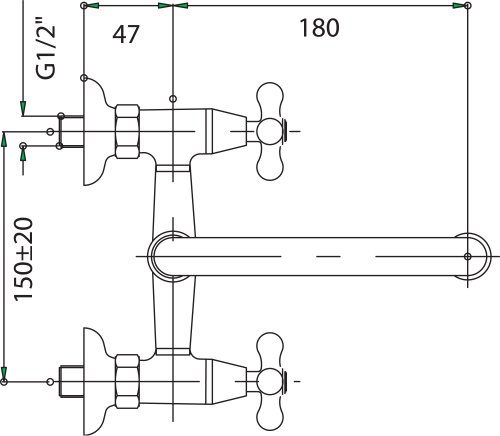 Ferro - Rubinetto da muro con erogatore dall'alto, cromato