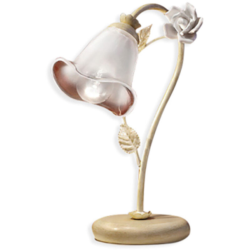 Collezione Classic Siena LIBERAMENTE ISPIRATA ALLA NATURA Lumetto 1 Luce E14 diam.11 cm h.29 cm con montatura Bianco Sfumato Oro frutto di una lavorazione eseguita rigorosamente a mano secondo le tecniche artigianali di una volta. Il vetro sabbiato sfumato dona alle lampade della linea Siena una delicata leggerezza che compensa la ricchezza delle lavorazioni artigianali delle rose in ceramica e dei rami frondosi in metallo. Per illuminare gli ambienti punteggiandoli con la forza rigogliosa della natura. Un connubio di diversi materiali che messi insieme hanno dato vita a questa creazione che con grazia decorerà il vostro appartamento sia classico che rustico. Anche la camera da letto sarà investita da un'aria primaverile con questo sobrio lumetto. E' disponibile anche nei colori Argento, Bianco, Bianco Sfumato Argento, Nero, Nero Sfumato Argento, Nero Sfumato Oro, Nero Sfumato Rame, Ruggine, Verde Sfumato Oro.