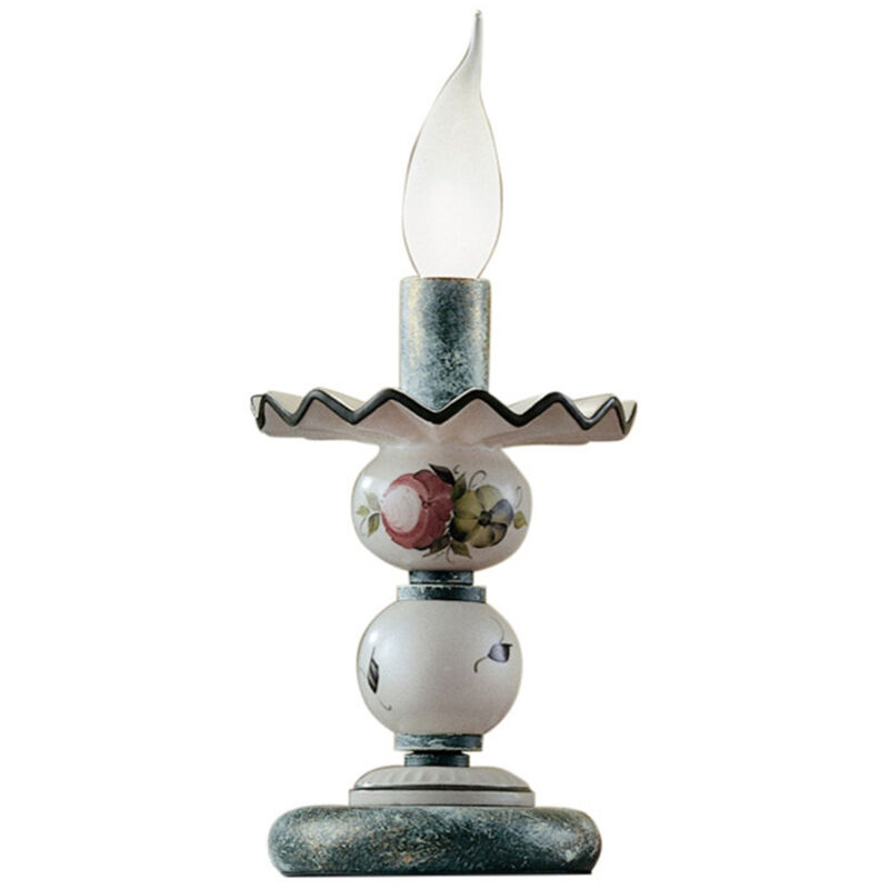 Collezione Classic Sanremo RIEVOCAZIONE NOSTALGICA DELLE LUCI A LUME DI CANDELA Lumetto 1 Luce E14 diam.12 cm in ceramica decoro Filo Verde Prato con montatura Verde Sfumato Oro frutto di una lavorazione eseguita rigorosamente a mano secondo le tecniche artigianali di una volta. Decisamente nostalgica la linea Sanremo che evoca il passato, quando l'illuminazione degli ambienti era affidata alla luce fioca delle candele. Ottone verniciato ed anticato e decorazioni floreali manuali rendono ogni lampada un gioiello. Essenziale e pur bello questo lumetto con i suoi delicati decori è perfetto per la vostra camera da letto in stile rustico o provenzale. I decori, eseguiti manualmente, si possono scegliere in base ai propri gusti. E' disponibile anche nei colori Argento, Bianco, Bianco Sfumato Argento, Bianco Sfumato Oro, Nero, Nero Sfumato Argento, Nero Sfumato Oro, Nero Sfumato Rame, Ruggine.