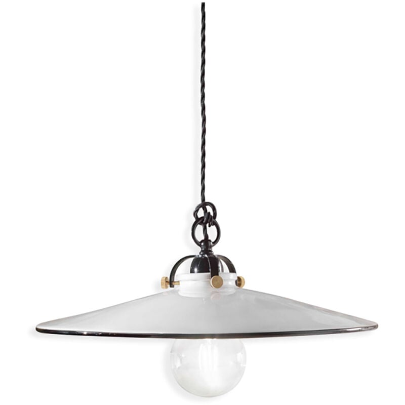 Collezione Classic Asti L'ARMONIA DEI DECORI Sospensione 1 Luce E27 diametro 42 cm in ceramica decoro Filo Nero con montatura nera e cavo intrecciato in tessuto frutto di una lavorazione eseguita rigorosamente a mano secondo le tecniche artigianali di una volta. L'armonia di un rassicurante passato ritorna nei materiali che compongono una linea dalle forme semplici ed essenziali. Il metallo e i decori dipinti a mano sulla ceramica sottolineano la maestria del lavoro manuale degli artigiani. La personalizzazione di ogni elemento rende la linea ancor più originale. Adatta ad illuminare una cucina rustica o moderna o un ampio ingresso che si ispira ad un passato recente. E' disponibile anche nei colori Argento, Bianco, Bianco Sfumato Argento, Bianco Sfumato Oro, Nero Sfumato Argento, Nero Sfumato Oro, Nero Sfumato Rame, Ottone Satinato, Ruggine, Verde Sfumato Oro.
