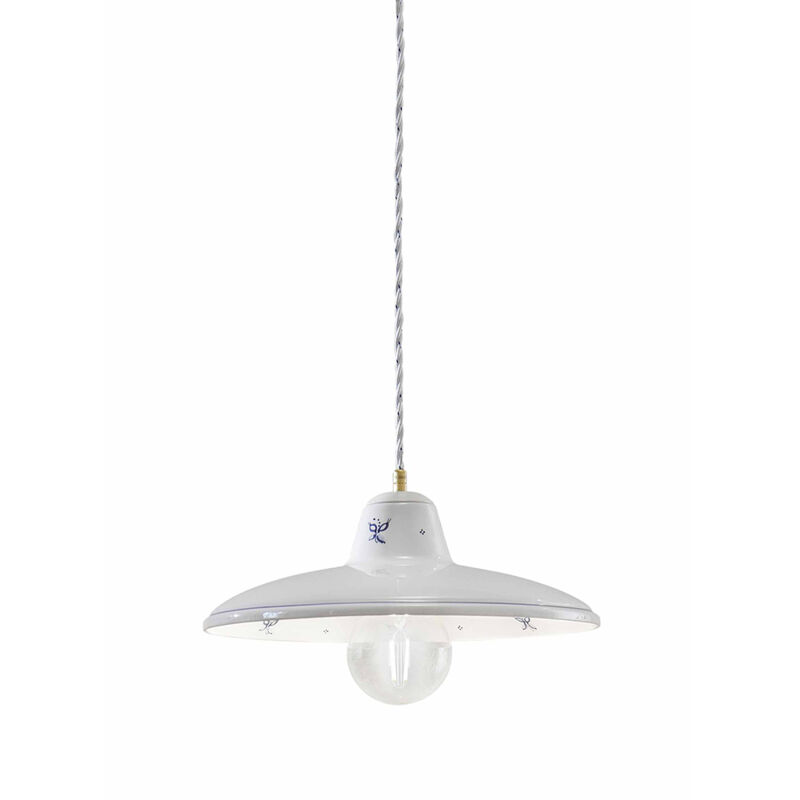 Collezione Classic Como L'ELEGANZA DELLA SEMPLICITÀ Sospensione 1 Luce E27 in ceramica diam.35 cm decoro Filo Blu con montatura Bianca frutto di una lavorazione eseguita rigorosamente a mano secondo le tecniche artigianali di una volta. Semplice e dalle forme nordiche, Como conferisce un tono essenziale. Ceramica bianca e semplici decori dipinti a mano sottolineano una linea dai tratti moderni che pur nella sua classicità ben si adatta ad ambienti contemporanei. I decori sono personalizzabili in base al prorpio gusto. Grazie al suo design essenziale questa versatile lampada a sospensione si sposa bene con una cucina moderna dove il bianco non guasta mai, personalizzandola poi col decoro a voi più gradito. E' disponibile anche nei colori Argento, Bianco Sfumato Argento, Bianco Sfumato Oro, Nero, Nero Sfumato Argento, Nero Sfumato Oro, Nero Sfumato Rame, Ruggine, Verde Sfumato Oro.