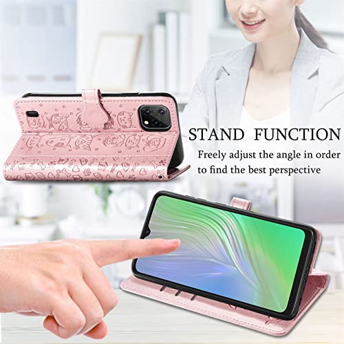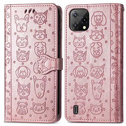 Fertuo Cover per Blackview A55 / Oscal C60, Custodia Portafoglio a Libro in Pelle Flip Cover con Porta Carte, Chiusura Magnetica [Disegni di Gatto Cane] Case Antiurto per Oscal C60, Oro Rosa