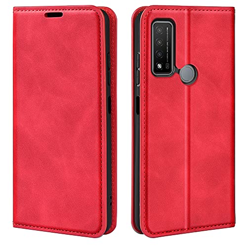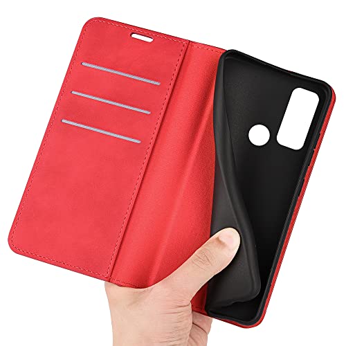 Fertuo Cover per TCL 20R 5G, Custodia a Libro in Pelle Flip Case Portafoglio con Porta Carte, Chiusura Magnetica [Interna in Silicone Morbido] Cover per TCL 20R 5G, Rosso