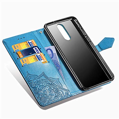 Fertuo Cover LG K40, Custodia Portafoglio a Libro in Pelle Flip Cover con Porta Carte, Kickstand, Chiusura Magnetica [Disegni di Mandala] Case Antiurto per LG K40, Blu