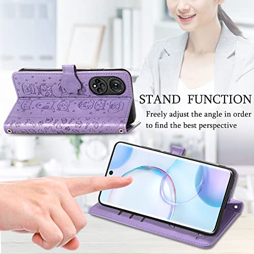 Fertuo Cover per Honor 50 / Huawei Nova 9, Custodia Portafoglio a Libro in Pelle Flip Cover con Porta Carte, Chiusura Magnetica [Disegni di Gatto Cane] Case Antiurto per Honor 50, Viola