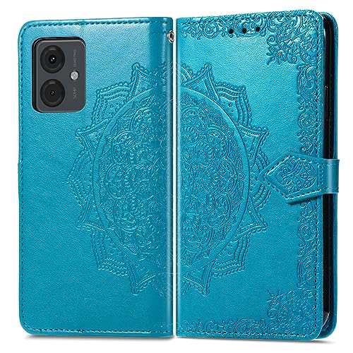 Fertuo Cover per Motorola Moto G14, Custodia Portafoglio a Libro in Pelle Flip Cover con Porta Carte, Chiusura Magnetica [Disegni di Mandala] Case Antiurto per Motorola Moto G14, Blu