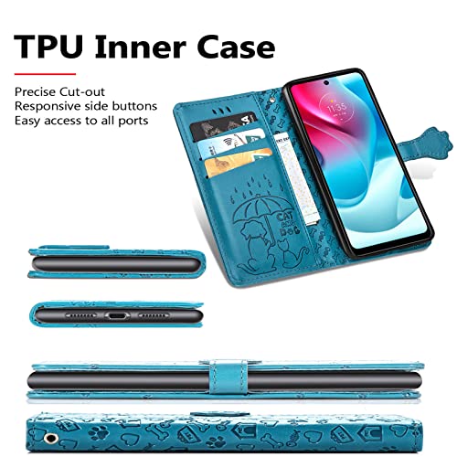 Fertuo Cover per Motorola Moto G60S, Custodia Portafoglio a Libro in Pelle Flip Cover con Porta Carte, Chiusura Magnetica [Disegni di Gatto Cane] Case Antiurto per Motorola Moto G60S, Blu