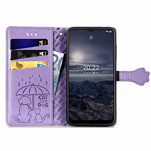 Fertuo Cover per Nokia G21 / G11, Custodia Portafoglio a Libro in Pelle Flip Cover con Porta Carte, Chiusura Magnetica [Disegni di Gatto Cane] Case Antiurto per Nokia G21 / G11, Viola
