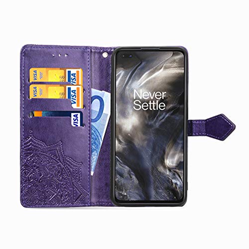 Fertuo Cover Oneplus Nord/Oneplus 8 Nord, Custodia Portafoglio a Libro in Pelle Flip Cover con Porta Carte, Chiusura Magnetica [Disegni di Mandala] Case Antiurto per Oneplus Nord 5G, Viola