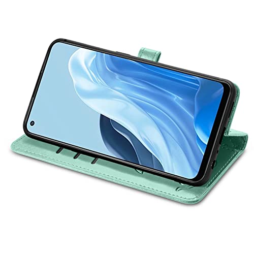 Fertuo Cover per OPPO Find X5 Lite, Custodia Portafoglio a Libro in Pelle Flip Cover con Porta Carte, Chiusura Magnetica [Disegni di Gatto Cane] Case Antiurto per OPPO Find X5 Lite, Verde
