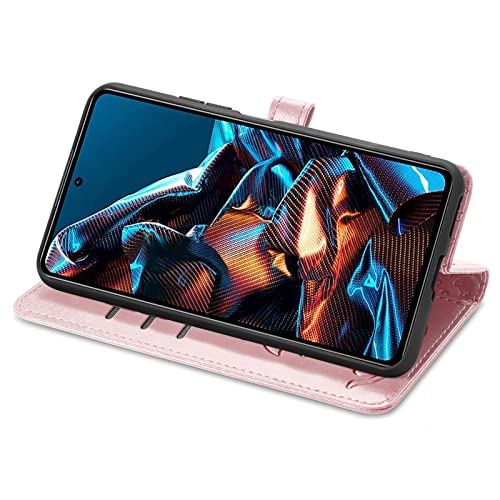 Fertuo Cover per POCO X5 Pro 5G / Xiaomi Redmi Note 12 Pro 5G, Custodia Portafoglio a Libro in Pelle Flip Cover con Porta Carte, Chiusura Magnetica [Gatto Cane] Case Antiurto per POCO X5 Pro, Oro Rosa