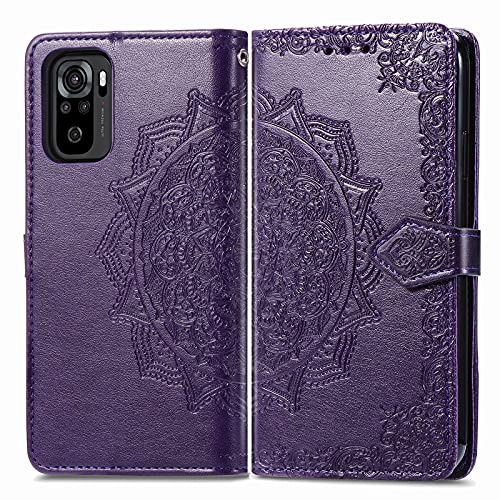 Fertuo Cover per POCO M5s / Xiaomi Redmi Note 10 4G / Note 10S, Custodia Portafoglio a Libro in Pelle Flip Cover con Porta Carte, Chiusura Magnetica [Mandala] Case Antiurto per POCO M5s, Viola