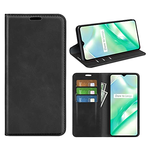 Fertuo Cover per Realme C33, Custodia a Libro in Pelle Flip Case Portafoglio con Porta Carte, Chiusura Magnetica [Interna in Silicone Morbido] Cover per Realme C33, Nero
