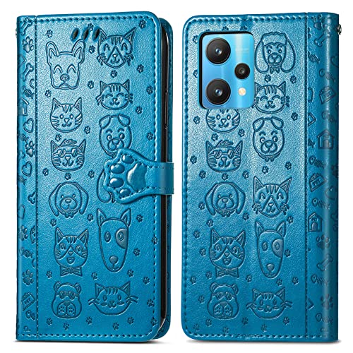 Fertuo Cover per Realme 9 Pro/Realme 9 5G, Custodia Portafoglio a Libro in Pelle Flip Cover con Porta Carte, Chiusura Magnetica [Disegni di Gatto Cane] Case Antiurto per Realme 9 5G, Blu