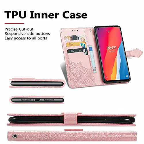 Fertuo Cover per Ulefone Note 11P, Custodia Portafoglio a Libro in Pelle Flip Cover con Porta Carte, Chiusura Magnetica [Disegni di Mandala] Case Antiurto per Ulefone Note 11P, Oro Rosa