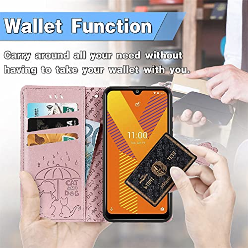 Fertuo Cover per Wiko Y62, Custodia Portafoglio a Libro in Pelle Flip Cover con Porta Carte, Chiusura Magnetica [Disegni di Gatto Cane] Case Antiurto per Wiko Y62, Oro Rosa