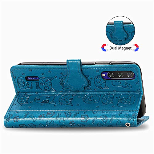 Fertuo Cover Xiaomi Mi 9 Lite, Custodia Portafoglio a Libro in Pelle Flip Cover con Porta Carte, Chiusura Magnetica [Disegni di Gatto Cane] Case Antiurto per Xiaomi Mi 9 Lite, Blu