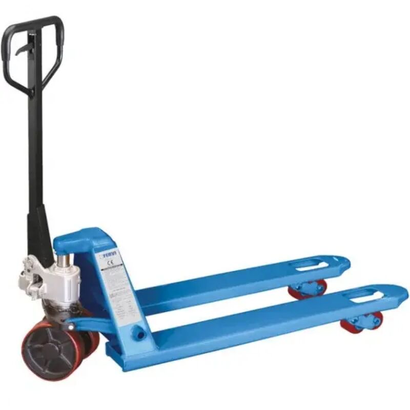 Il transpallet manuale ribassato 2500 kg Fervi 0028R è una soluzione professionale ideale per eseguire con facilità la movimentazione di merci e materiali.Dotato di ruota anteriore doppia e battistrada in poliuretano, questo strumento permette la movimentazione di materiali fino a 2500 kg di peso totale. Tipologia: Transpallet manuale Modello: Ribassato Utilizzo: Movimentazione materiali Telaio: 3 mm Altezza forche: 63 - 165 mm Portata: 2500 kg Ruote: Anteriori doppie Dimensione: Forche 115x54 cm Peso: 68,5 kg