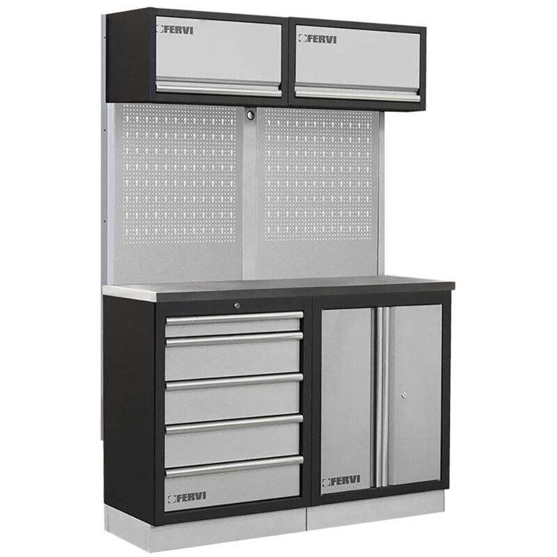 FERVI A008M ARREDAMENTO MODULARE PER OFFICINA CON PIANALE IN ACCIAIO INOX LA SOLUZIONE OTTIMALE PER ARREDARE LA TUA OFFICINA, IL TUO GARAGE O IL TUO ANGOLO RACING Dimensioni: 1360 x 498 x 2000h mm ACCESSORI INCLUSI NEL PREZZO: 2 ARMADI PENSILI CON AMMORTIZZATORI A GAS (A007/01) 1 ARMADIO BASSO A DUE ANTE CON UN PIANO INTERNO (A007/03) 1 CASSETTIERA A 5 CASSETTI SU CUSCINETTI (A007/05) 2 PROFILI DI GIUNZIONE PER PANNELLI FORATI (A007/07) 1 PIANO IN ACCIAIO INOX (A007/08I) 2 PANNELLI FORATI (A007/10) 1 PROFILO PER PANNELLI FORATI (A007/11)
