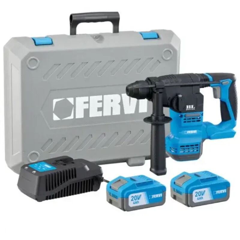 Il tassellatore Brushless SDS-Plus con due batterie 20 V Fervi FB20RH3AB-24B è un elettroutensile potente e performante, ideale per eseguire lavori di foratura o piccoli interventi di demolizione.Questo potente tassellatore è alimentato da batterie 20 V che azionano un prestante motore Brushless, robusto e durevole mantiene le sue caratteristiche nel tempo senza richiedere particolare manutenzione.Il mandrino con attacco SDS-Plus permette di montare scalpelli e punte di vario genere per adattarsi a tutte le tipologie di intervento. Il Fervi FB20RH3AB è indicato per realizzare forature nel cemento o muratura fino a 18 mm di diametro, nell'acciaio fino a 13 mm e nel legno fino a 20 mm, erogando fino a 4500 colpi da 2,3 Joule di forza al minuto.Grazie alla possibilità di selezionare tre differenti modalità sarà possibile adattare il funzionamento dell'elettroutensile a quelle che sono le necessità del momento. Questo elettroutensile Fervi è inoltre integrato con sistemi come