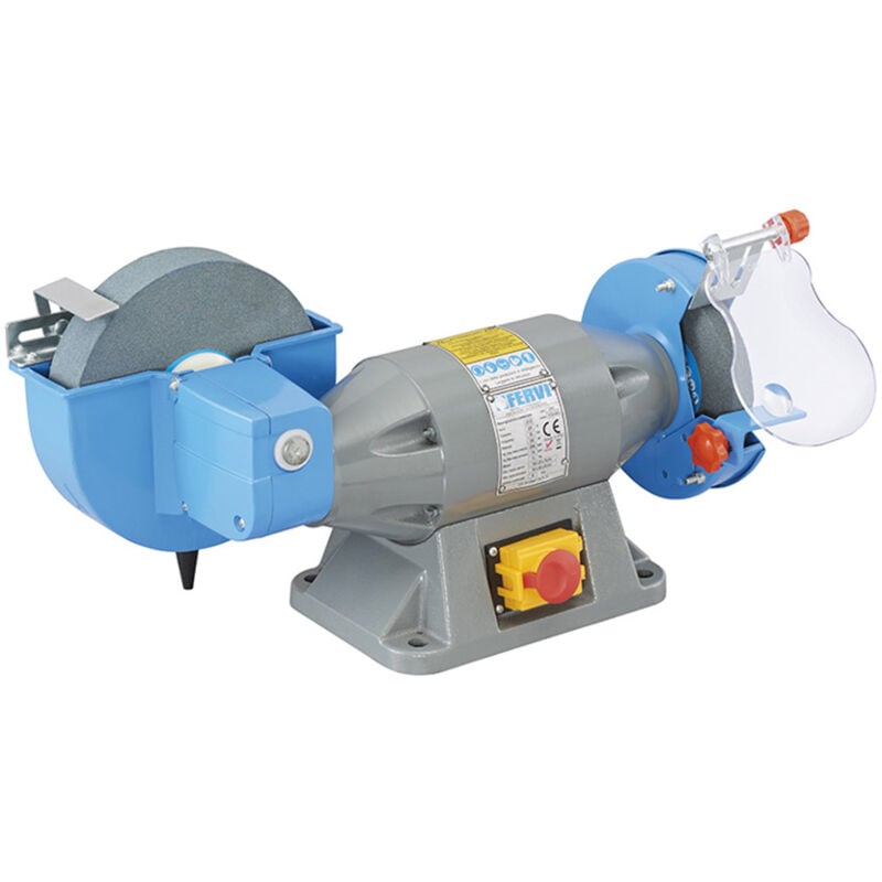 Smerigliatrice da banco combinata Fervi 0377 La Smerigliatrice da banco combinata Fervi 0377 è un eccellente strumento per la lavorazione dei metalli che offre una combinazione versatile di funzionalità per soddisfare una vasta gamma di esigenze di lavorazione. Questa smerigliatrice da banco unisce la potenza di una mola a secco ad alta velocità e la precisione di una mola ad acqua, garantendo risultati di smerigliatura di alta qualità. La mola a secco di questa macchina funziona a una velocità di rotazione di 2950 rpm, consentendo una rimozione efficace del materiale. La dimensione della mola è di Ø 150 x 20 x 16 mm con grana GR80, il che la rende ideale per la rifinitura di pezzi di lavoro in metallo. Questa opzione di smerigliatura è perfetta per la lavorazione di dettagli e la precisione. La mola ad acqua funziona a una velocità più lenta di 130 rpm, ed è dotata di una mola più grande con dimensioni di Ø 200 x 40 x 20 mm e grana GR80. Questa opzione di smerigliatura ad acqua è