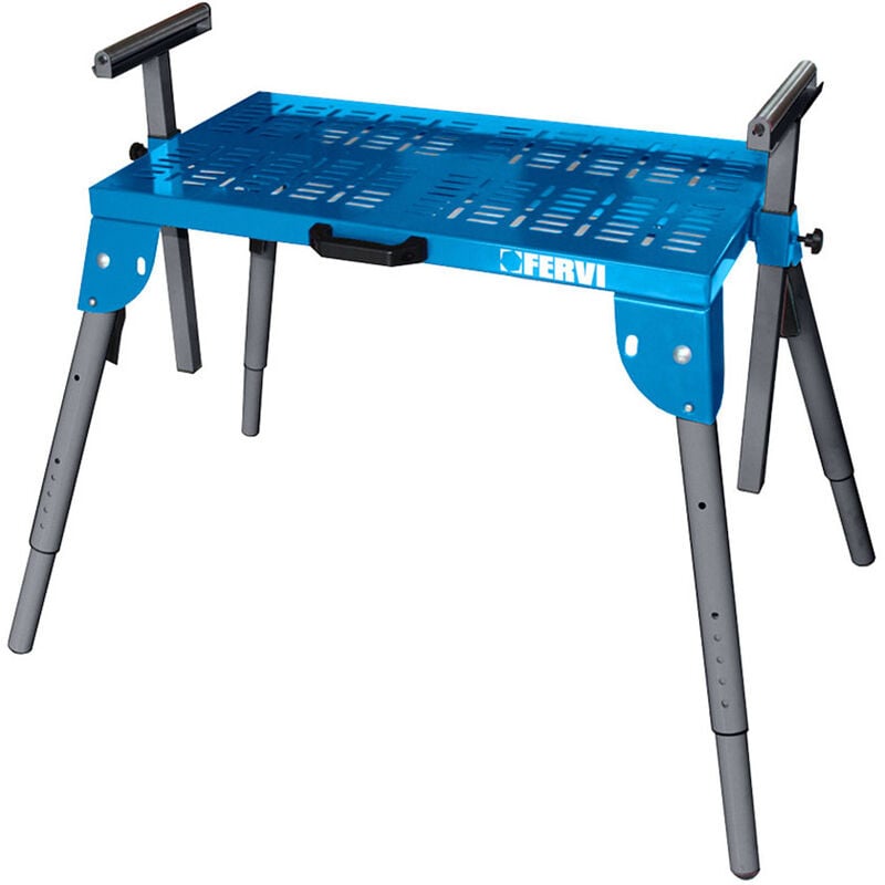 Supporto pieghevole per troncatrici o seghe a nastro Fervi 0522 Il Supporto pieghevole per troncatrici e seghe a nastro Fervi 0522 è la soluzione ideale per chi cerca versatilità e affidabilità nella gestione delle attività di taglio e lavorazione. Questo supporto è stato progettato con una serie di caratteristiche eccezionali che lo rendono uno strumento essenziale per qualsiasi professionista o hobbista del settore. Con una robusta capacità di portata di 150 kg, questo supporto può sostenere facilmente una vasta gamma di troncatrici e seghe a nastro, garantendo la stabilità necessaria per un lavoro preciso e sicuro. Le dimensioni del piano di lavoro, pari a 820 x 460 mm, offrono uno spazio sufficiente per posizionare comodamente il tuo attrezzo di lavoro e i materiali da tagliare. La regolabilità dell'altezza della tavola, con opzioni di 600 mm, 715 mm, 745 mm, 770 mm, 795 mm e 820 mm, consente di personalizzare l'altezza per adattarla alle tue esigenze specifiche e migliorare