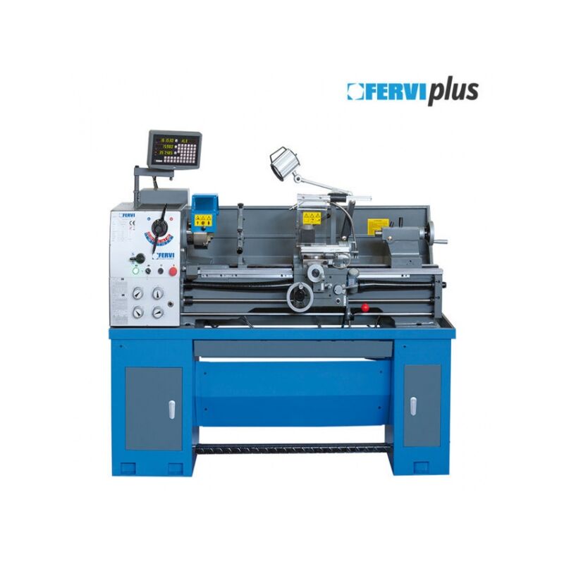 Il tornio parallelo 400 V con visualizzatore e banco Fervi T999/400V3A è una macchina utensile professionale estremamente prestante ed efficiente.Progettata per garantire lavorazioni di estrema qualità nell'ambito dei materiali metallici, questo tornio permette di eseguire operazioni di tornitura, filettatura e profilatura, tra le altre, in maniera estremamente precisa e pulita.Dotato di barra di tornitura con frizione registrabile, visualizzatore a tre assi integrato e scatola ingranaggi semi Norton, questo tornio presenta tutti gli optional necessari per eseguire operazioni di qualità.Presenta inoltre banco d'appoggio con armadietti inclusi, per poter iniziare a lavorare istantaneamente. Il tornio parallelo 400 V con visualizzatore e banco Fervi T999/400V3A è fornito con mandrino autocentrante 3+3 da 160 mm, mandrino a 4 griffe indipendenti reversibili 200 mm, bussola di riduzione CM 5/3, flangia 320 mm, lunetta fissa e mobile, due contropunte fisse CM 3, contropunta rotante CM 3