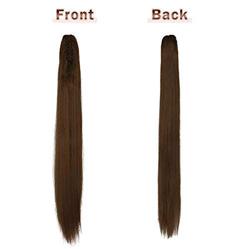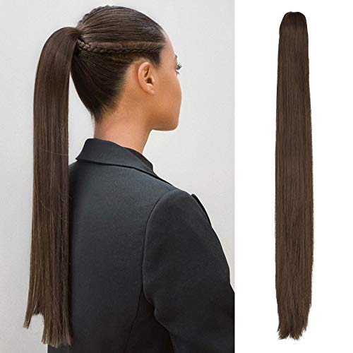 FESHFEN Clip on - Extension a coda di cavallo, lunghezza 71 cm, con treccia, coda di cavallo, capelli lisci, colore: marrone chiaro