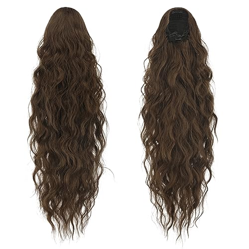 FESHFEN Coda Capelli Extension con Coulisse Lunga Marrone Muschio Ondulati Ricci Posticci Sintetici Ondulati Coda Cavallo Extension Posticci Extension Capelli per Donna, 65 cm
