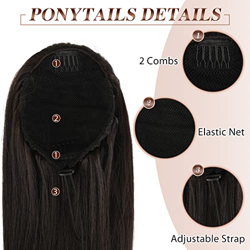 FESHFEN Coulisse Coda di Cavallo Extension, 50 cm Ponytail Extension Coda Capelli Lisci Lungo Coulisse Estensione dei Capelli Sintetica Coda Capelli Extension Marrone più scuro