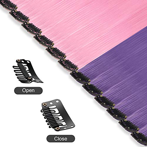 FESHFEN Extension Capelli Colorati Clip, 12 Pezzi Rosa Viola Chiaro Extension Colorati Capelli Ciocche Colorate per Capelli Extension Colored Clip in Hair Extensions Cosplay Party, 55 cm