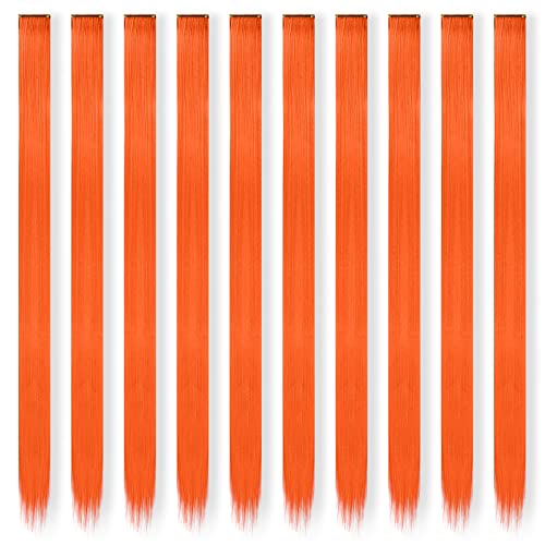FESHFEN Extension Capelli Colorati Clip, 10 Pezzi Arancione Extension Colorati Capelli Ciocche Colorate per Capelli Extension Colored Clip in Hair Extensions Cosplay Party, 55 cm